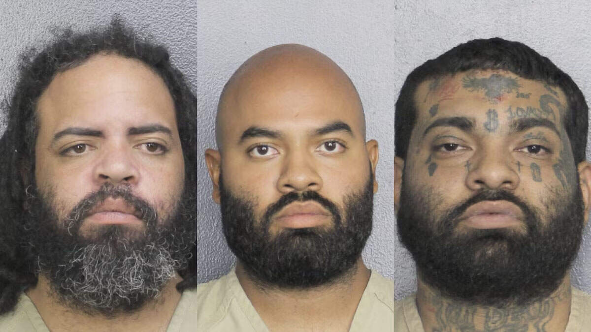 The Justice Department said that the three men abducted their victim from a parking garage outside his Fort Lauderdale home at gunpoint. The men were dressed as police officers and forced him into the back of a Dodge Charger, which was equipped with police-style lights.